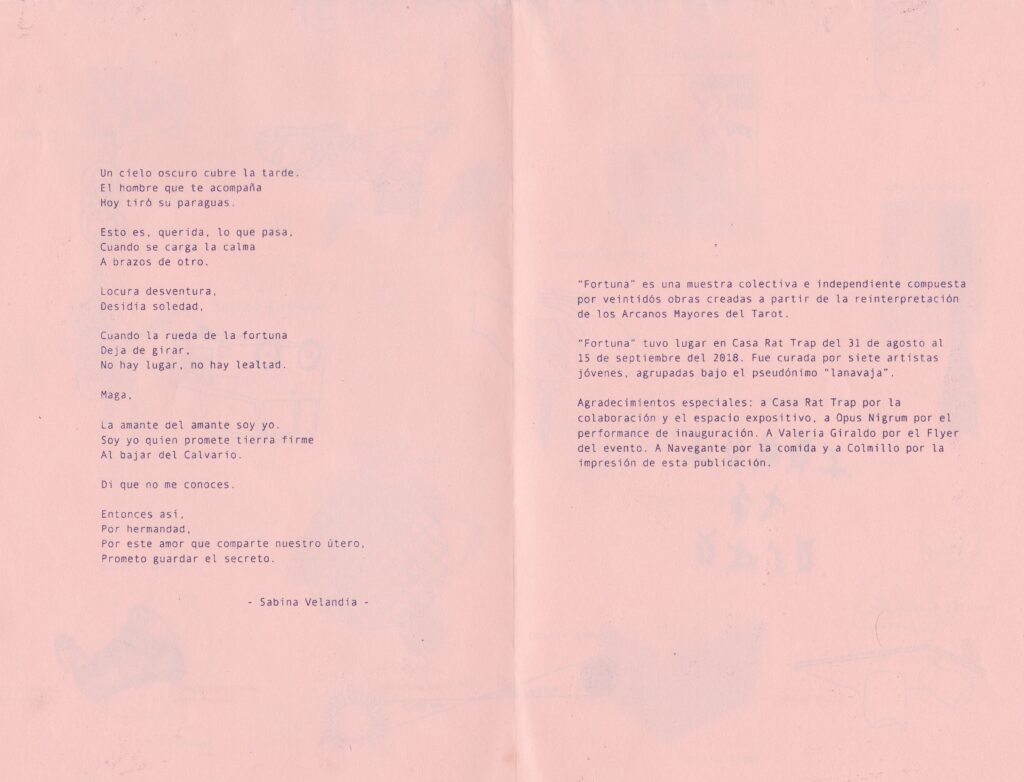 Fortuna fue una exposición donde se invitaron a 22 artistas a hacer su propia interpretación de los 22 Arcanos mayores del Tarot. Curé y gestioné esta muestra junto al colectivo Lanavaja en el año 2018.